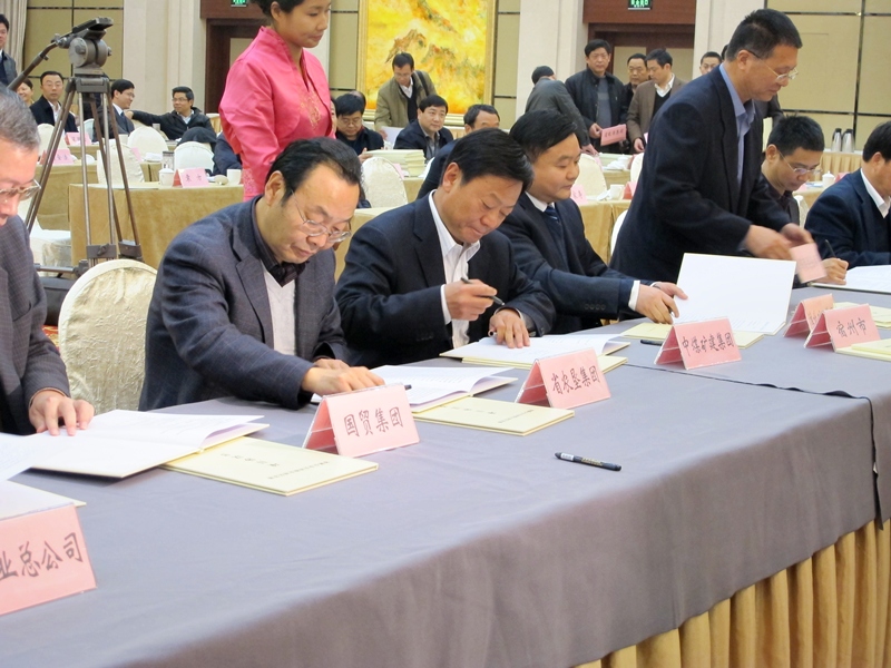 11月25日下午,省国资委在合肥召开安徽省省属企业支持皖北地区发展工作会议。副省长黄海嵩出席会议并讲话,省直各有关部门领导以及皖北三市七县和各省属企业主要负责同志参加会议。李卓民总经理应邀参加会议并代表省农垦集团与宿州市、怀远县签订战略合作协议。