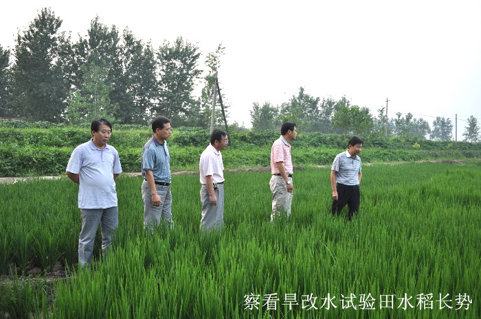 王占廷一行又来到第二农管区旱改水试验田,沿着田埂走到稻田深处察看水稻生长情况。林贤传介绍说,今年午季农场通过土地流转的方式,拿出105亩进行旱改水试验,尝试了机插秧、旱直播、旱稻及人工插秧等多种栽种方式,品种也选了好几个,主要是为了以点带面、积累经验。看到眼前生机勃发的稻田,王占廷称赞道,种植结构调整就是要解放思想、敢为人先,不能患得患失、裹足不前,农场要鼓励扶持职工大胆尝试,这块水稻田长势比较好,只要管理措施到位,产量水平应该不算低的。