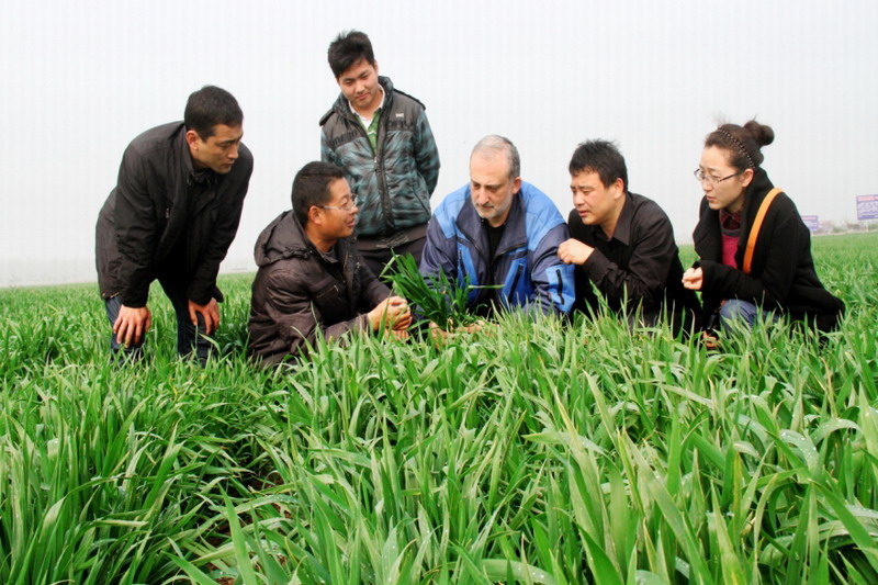 开课前,阿瑟博士在龙亢农场现代农业科技园现场演示了光合作用仪采集数据的过程,培训结束后还同农场农技人员一道察看了育种田小麦长势。(李峰)